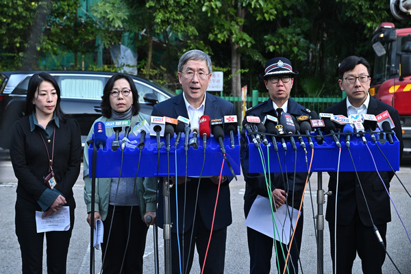 卓永興今日連同民政及青年事務局局長麥美娟、勞工及福利局局長孫玉菡會見傳媒,講述大埔宏福苑五級火警的跟進工作。